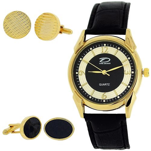 Die Montre Time Design Analogique pour Homme & 2 Paires de Boutons de Manchette Details