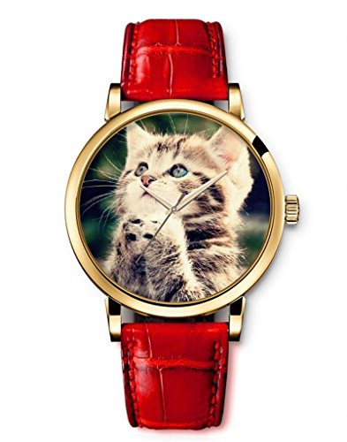 Achetez iCreat Montre Femme Quartz Bracelet Cuir Rouge Etanche - Chat Mignon: Femmes : Amazon.fr Livraison gratuite possible dès 25 € d'achat