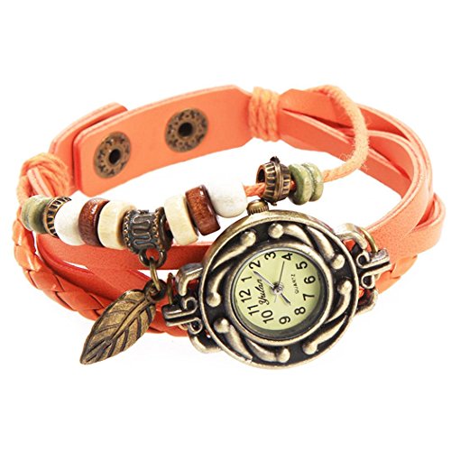 Montre quartz bracelet pendentifs feuille et perles en cuir de daim orange est l’un des les types de montre qui pourrait être ainsi un option pour votre jeune