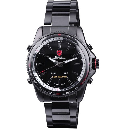 ... Montre Homme Sportive Quartz LED Bracelet Acier ... Shark Montre Homme Sportive Quartz LED Bracelet Acier Inoxydable Etanche Cadran Noir Neuf SH001 ...