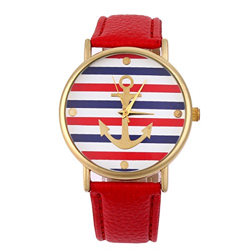 Yesurprise Montre Quartz Pour femme/fille Ancre Stripe Bracelet en cuir Rouge est parmi les types de montre qui pourrait être ainsi un choix pour votre jeune