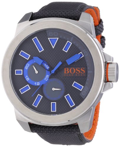 Boss Orange Homme , Modele : 1513010, Mouvement : Quartz, Boitier : Rond Acier inoxydable, Cadran : Gris , Verre : Minéral, Etanchéité : 3 ATM, Bracelet : Tissu ...