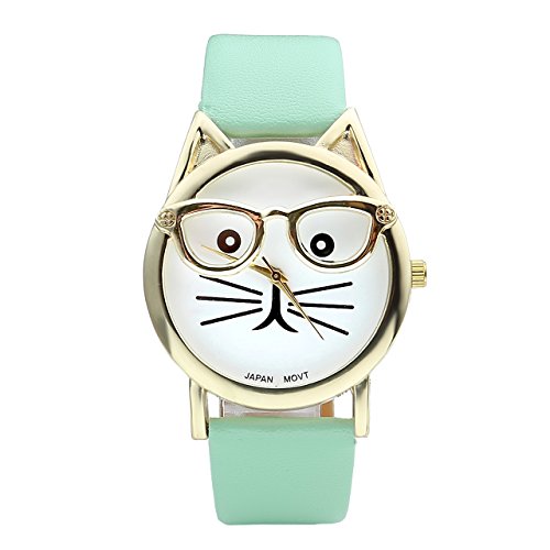 JSDDE Montre Charmante Cadran Jante D'or Visage De Chat Mignon Faux Cuir Pour Filles Vert Lunettes Glasses est parmi les sortes de montre qui pourrait être ainsi un option pour votre enfant