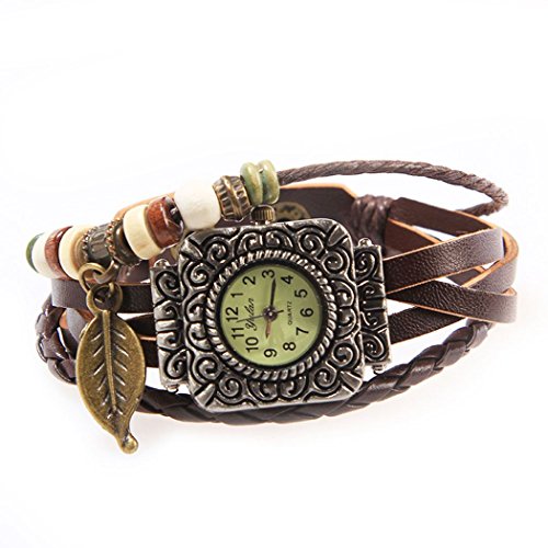 Achetez Montre bracelet cadran bronze retro pendentifs trefle et perles en cuir de daim chocolat: ... Montre bracelet bresilien cadran carre pendentifs feuille et ...