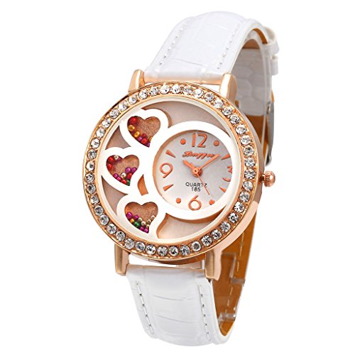 Infinite U Fantaisie en Forme de Cœur Sablier Strass avec Bracelet en Cuir Blanc Femme Montre Quartz pour Petite Amie/Amant/Amoureux est parmi les trie de montre qui pourrait être ainsi un alternative pour votre enfant