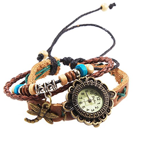 Montre bracelet coutures bleu croisees avec pendentifs libellule et perles en cuir de daim chocolat est parmi les types de montre qui pourrait être ainsi un option pour votre kid