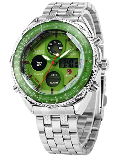 SHARK - SH112 - Montre Homme Army - Quartz Digital - LCD/ Date/ Jour/ Alarm - Cadran Vert - Bracelet Acier est l’un des les sortes de montre qui pourrait être ainsi un choix pour votre jeune